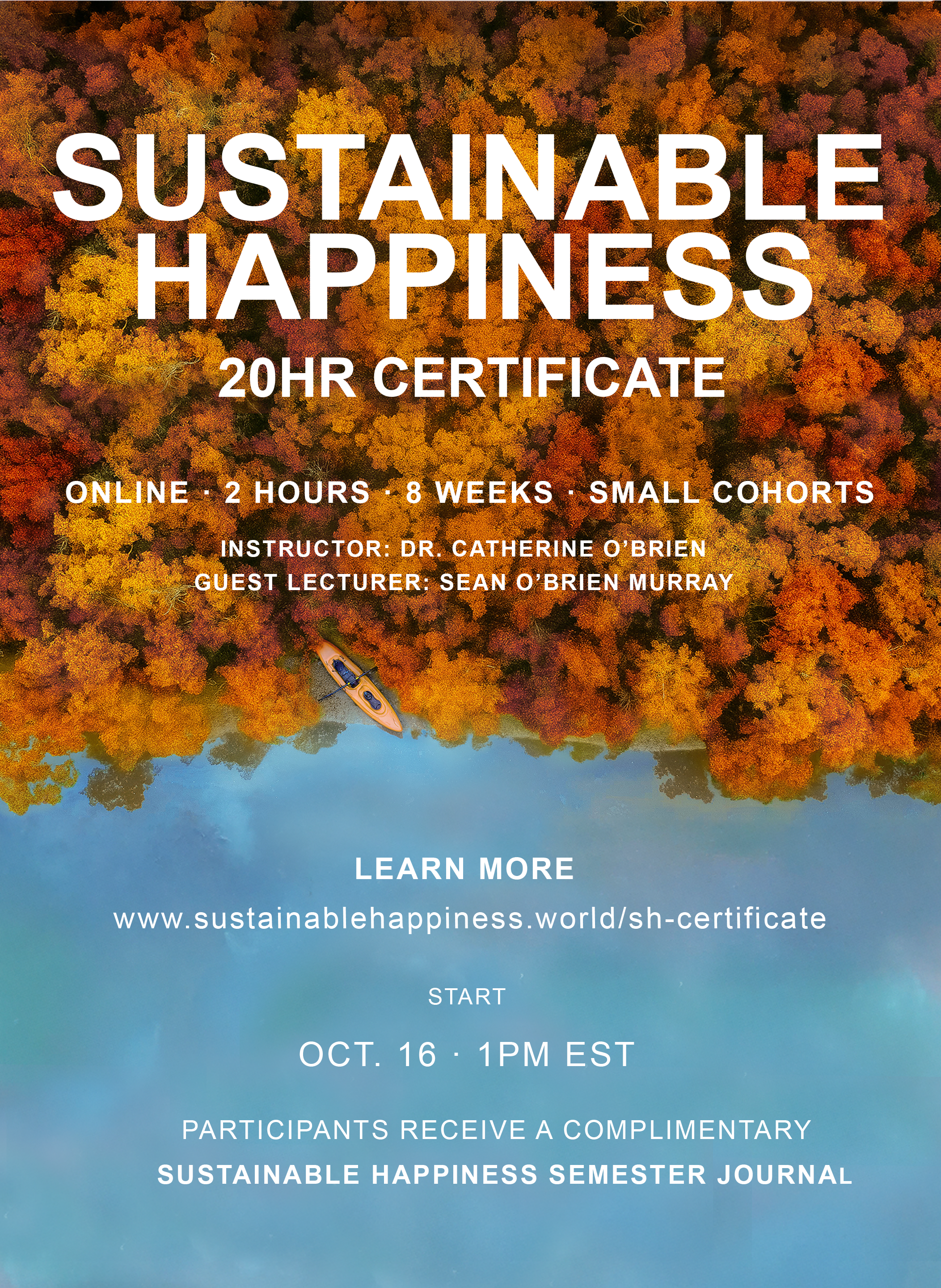 Format: Online, 2-hour sessions + 4hrs of class assignments and development of the Sustainable Happiness project
